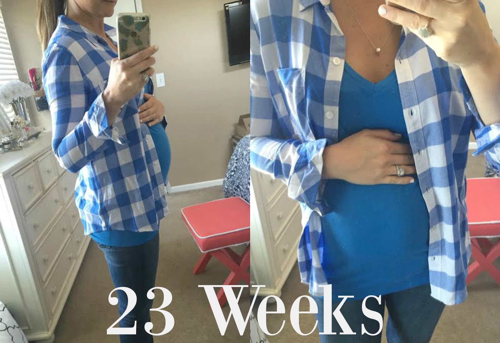 Movement: Starting around 21 weeks, I started feeling him kick and move all the time! Finally! They aren't huge movements yet, but enough for Billy to feel them and to see them from the outside too.
